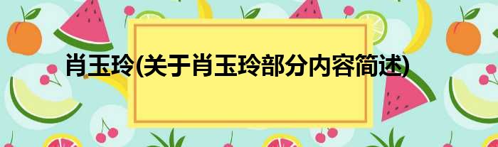 肖玉玲(关于肖玉玲部分内容简述)