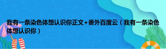 大家好,小活来为大家解答以上的问题。我有一条染色体想认识你正文+番外百度云,我有一条染色体想认识你这个很多人还不知道,现在让我们一起来看看吧!