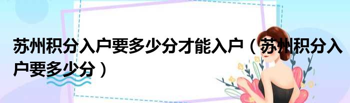 苏州积分入户要多少分才能入户(苏州积分入户要多少分)