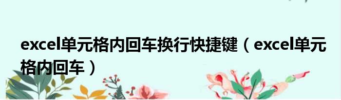 excel单元格内回车换行快捷键(excel单元格内回车)
