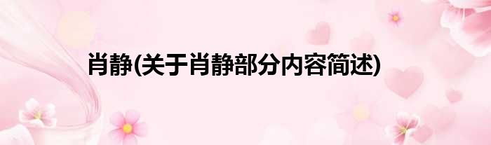 导读 大家好,今天小方来说说一篇关于肖静,关于肖静部分内容简述的文章,那么现在就为大家来简单介绍下,希望对各位小伙伴们有所帮助。
