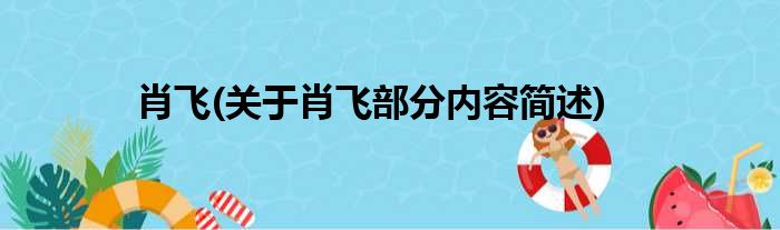 大家好,今天小方来说说一篇关于肖飞,关于肖飞部分内容简述的文章,那么现在就为大家来简单介绍下,希望对各位小伙伴们有所帮助。