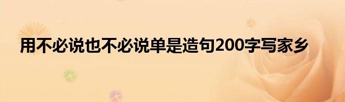 大家好,小活来为大家解答以上的问题。用不必说也不必说单是造句200字写家乡这个很多人还不知道,现在让我们一起来看看吧!