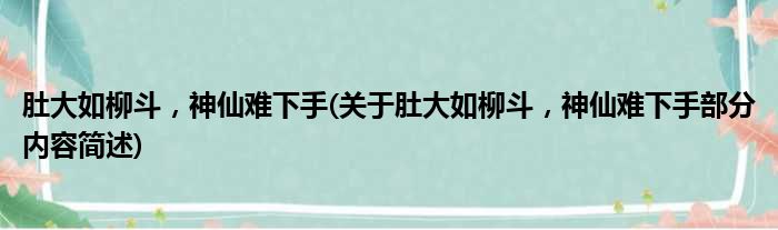 肚大如柳斗,神仙难下手(关于肚大如柳斗,神仙难下手部分内容简述)