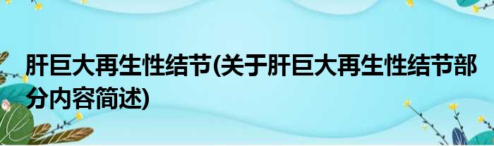 肝巨大再生性结节(关于肝巨大再生性结节部分内容简述)
