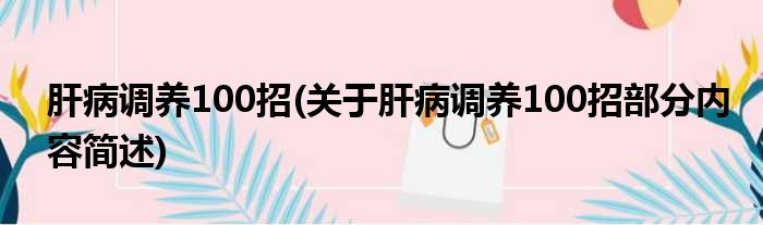 大家好,今天小方来说说一篇关于肝病调养100招,关于肝病调养100招部分内容简述的文章,那么现在就为大家来简单介绍下,希望对各位小伙伴们有所帮助。