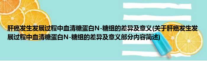 肝癌发生发展过程中血清糖蛋白N-糖组的差异及意义(关于肝癌发生发展过程中血清糖蛋白N-糖组的差异及意义部分内容简述)