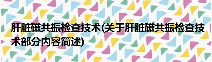 肝脏磁共振检查技术(关于肝脏磁共振检查技术部分内容简述)