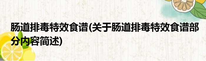 肠道排毒特效食谱(关于肠道排毒特效食谱部分内容简述)