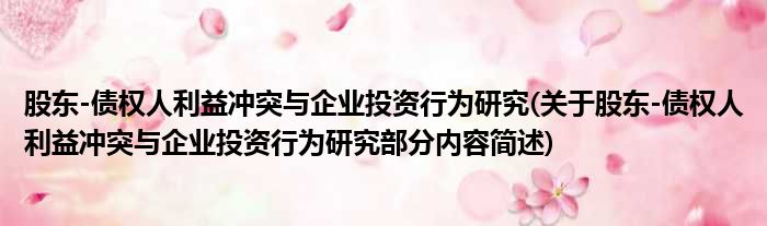 导读 大家好,今天小方来说说一篇关于股东-债权人利益冲突与企业投资行为研究,关于股东-债权人利益冲突与企业投资行为研究部分内容简述的文章,