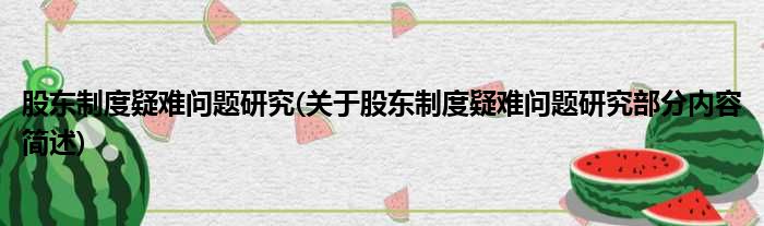 股东制度疑难问题研究(关于股东制度疑难问题研究部分内容简述)