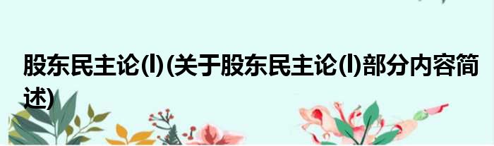股东民主论(l)(关于股东民主论(l)部分内容简述)