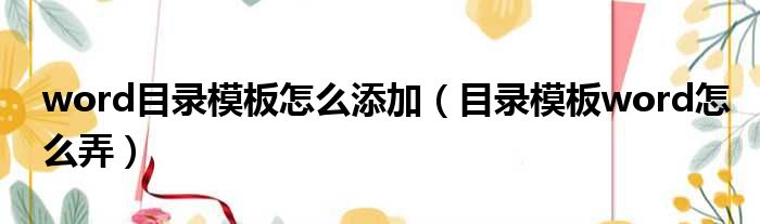 大家好,小活来为大家解答以上的问题。word目录模板怎么添加,目录模板word怎么弄这个很多人还不知道,现在让我们一起来看看吧!
