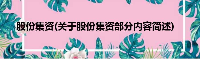 导读 大家好,今天小方来说说一篇关于股份集资,关于股份集资部分内容简述的文章,那么现在就为大家来简单介绍下,希望对各位小伙伴们有所帮助。