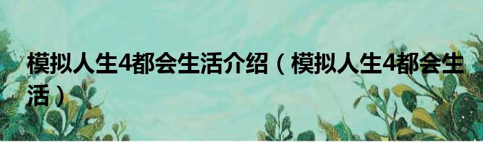 模拟人生4都会生活介绍(模拟人生4都会生活)