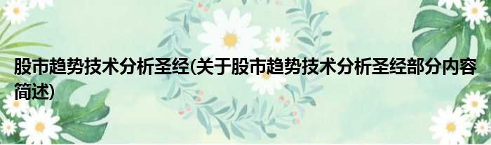 股市趋势技术分析圣经(关于股市趋势技术分析圣经部分内容简述)
