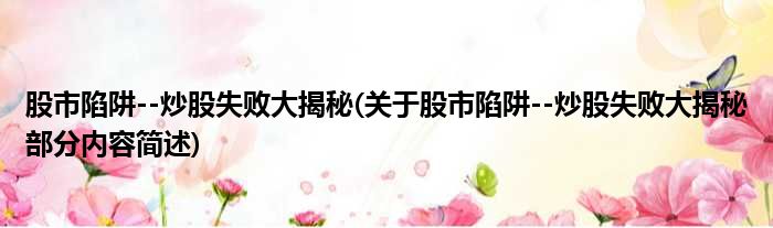 导读 大家好,今天小方来说说一篇关于股市陷阱--炒股失败大揭秘,关于股市陷阱--炒股失败大揭秘部分内容简述的文章,那么现在就为大家来简单介绍