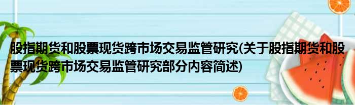 股指期货和股票现货跨市场交易监管研究(关于股指期货和股票现货跨市场交易监管研究部分内容简述)