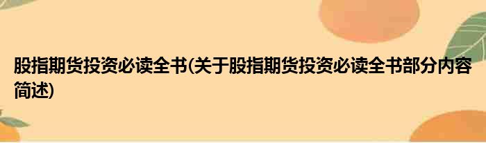 导读 大家好,今天小方来说说一篇关于股指期货投资必读全书,关于股指期货投资必读全书部分内容简述的文章,那么现在就为大家来简单介绍下,希望