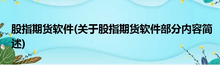 大家好,今天小方来说说一篇关于股指期货软件,关于股指期货软件部分内容简述的文章,那么现在就为大家来简单介绍下,希望对各位小伙伴们有所帮助。