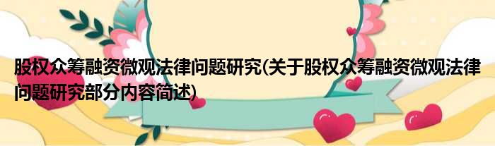股权众筹融资微观法律问题研究(关于股权众筹融资微观法律问题研究部分内容简述)