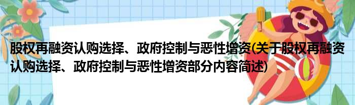 股权再融资认购选择、政府控制与恶性增资(关于股权再融资认购选择、政府控制与恶性增资部分内容简述)