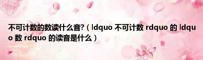 不可计数的数读什么音?(ldquo 不可计数 rdquo 的 ldquo 数 rdquo 的读音是什么)
