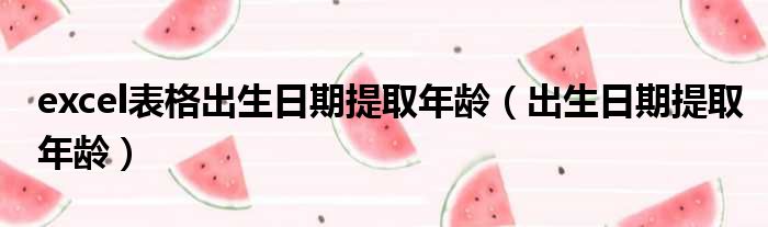 excel表格出生日期提取年龄(出生日期提取年龄)