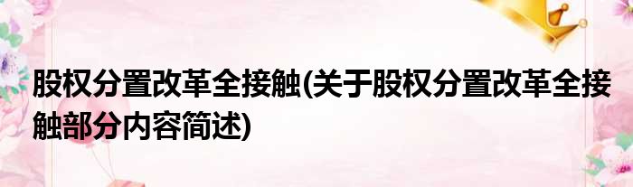 股权分置改革全接触(关于股权分置改革全接触部分内容简述)