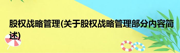 股权战略管理(关于股权战略管理部分内容简述)