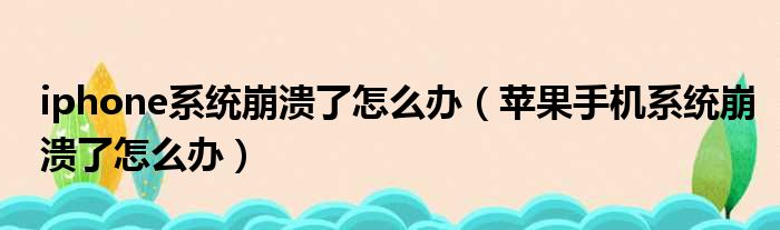 iphone系统崩溃了怎么办(苹果手机系统崩溃了怎么办)