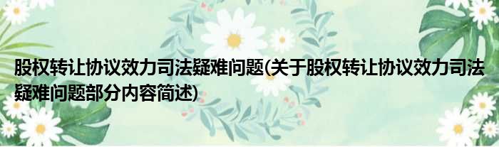 股权转让协议效力司法疑难问题(关于股权转让协议效力司法疑难问题部分内容简述)