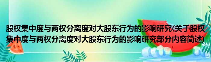 股权集中度与两权分离度对大股东行为的影响研究(关于股权集中度与两权分离度对大股东行为的影响研究部分内容简述)
