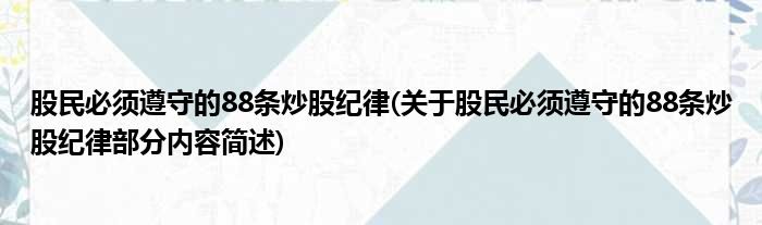股民必须遵守的88条炒股纪律(关于股民必须遵守的88条炒股纪律部分内容简述)