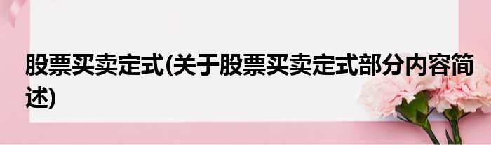 股票买卖定式(关于股票买卖定式部分内容简述)