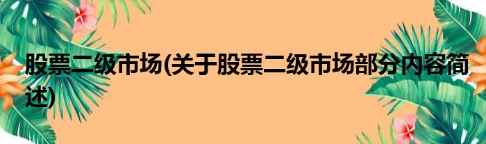 大家好,今天小方来说说一篇关于股票二级市场,关于股票二级市场部分内容简述的文章,那么现在就为大家来简单介绍下,希望对各位小伙伴们有所帮助。