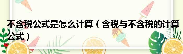 导读 大家好,小活来为大家解答以上的问题。不含税公式是怎么计算,含税与不含税的计算公式这个很多人还不知道,现在让我们一起来看看吧!1、含税