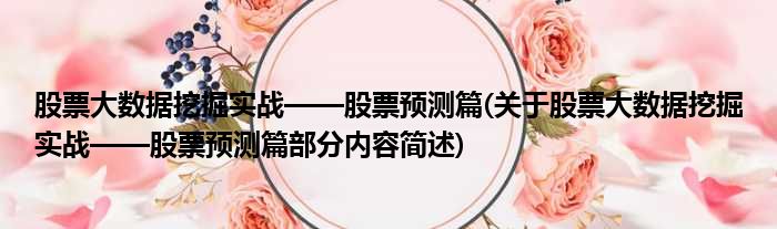 导读 大家好,今天小方来说说一篇关于股票大数据挖掘实战——股票预测篇,关于股票大数据挖掘实战——股票预测篇部分内容简述的文章,那么现在就