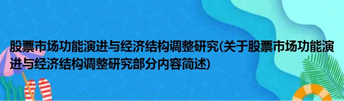 导读 大家好,今天小方来说说一篇关于股票市场功能演进与经济结构调整研究,关于股票市场功能演进与经济结构调整研究部分内容简述的文章,那么现
