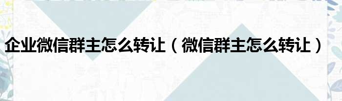 企业微信群主怎么转让(微信群主怎么转让)