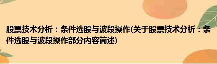 股票技术分析:条件选股与波段操作(关于股票技术分析:条件选股与波段操作部分内容简述)