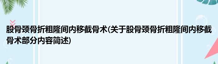 股骨颈骨折粗隆间内移截骨术(关于股骨颈骨折粗隆间内移截骨术部分内容简述)