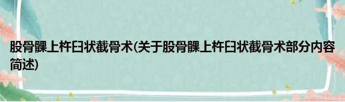 股骨髁上杵臼状截骨术(关于股骨髁上杵臼状截骨术部分内容简述)