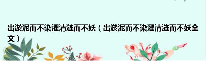 出淤泥而不染濯清涟而不妖(出淤泥而不染濯清涟而不妖全文)