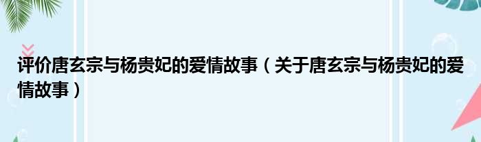 评价唐玄宗与杨贵妃的爱情故事(关于唐玄宗与杨贵妃的爱情故事)