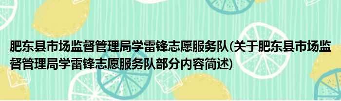 肥东县市场监督管理局学雷锋志愿服务队(关于肥东县市场监督管理局学雷锋志愿服务队部分内容简述)