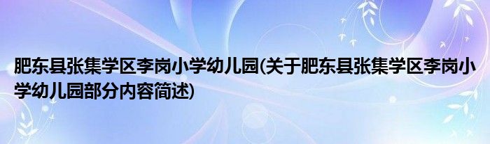 肥东县张集学区李岗小学幼儿园(关于肥东县张集学区李岗小学幼儿园部分内容简述)