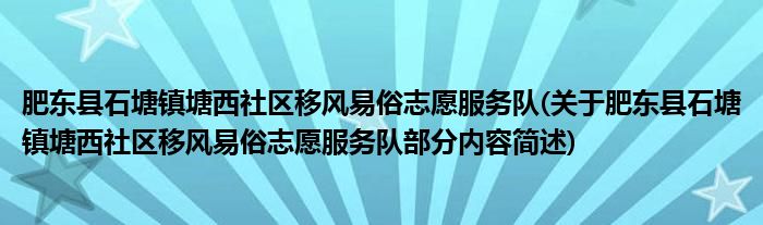 肥东县石塘镇塘西社区移风易俗志愿服务队(关于肥东县石塘镇塘西社区移风易俗志愿服务队部分内容简述)
