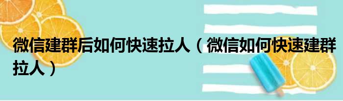 微信建群后如何快速拉人(微信如何快速建群拉人)