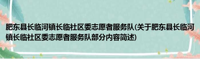 肥东县长临河镇长临社区委志愿者服务队(关于肥东县长临河镇长临社区委志愿者服务队部分内容简述)